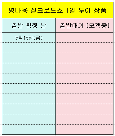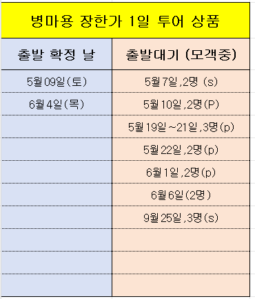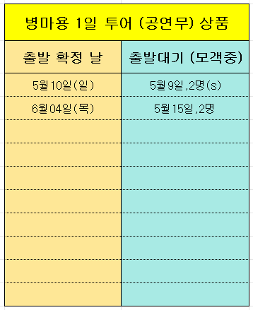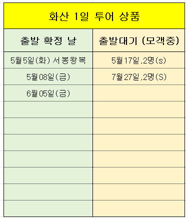현재까지 확정 된 일일투어 상품과 모객중인 상품을 올려 드립니다