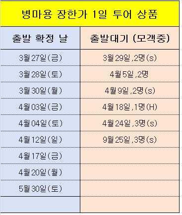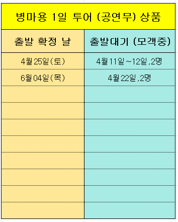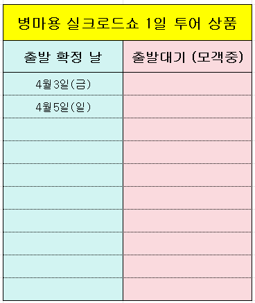 현재까지 출발 확정된 일일투어 상품 올려 드립니다